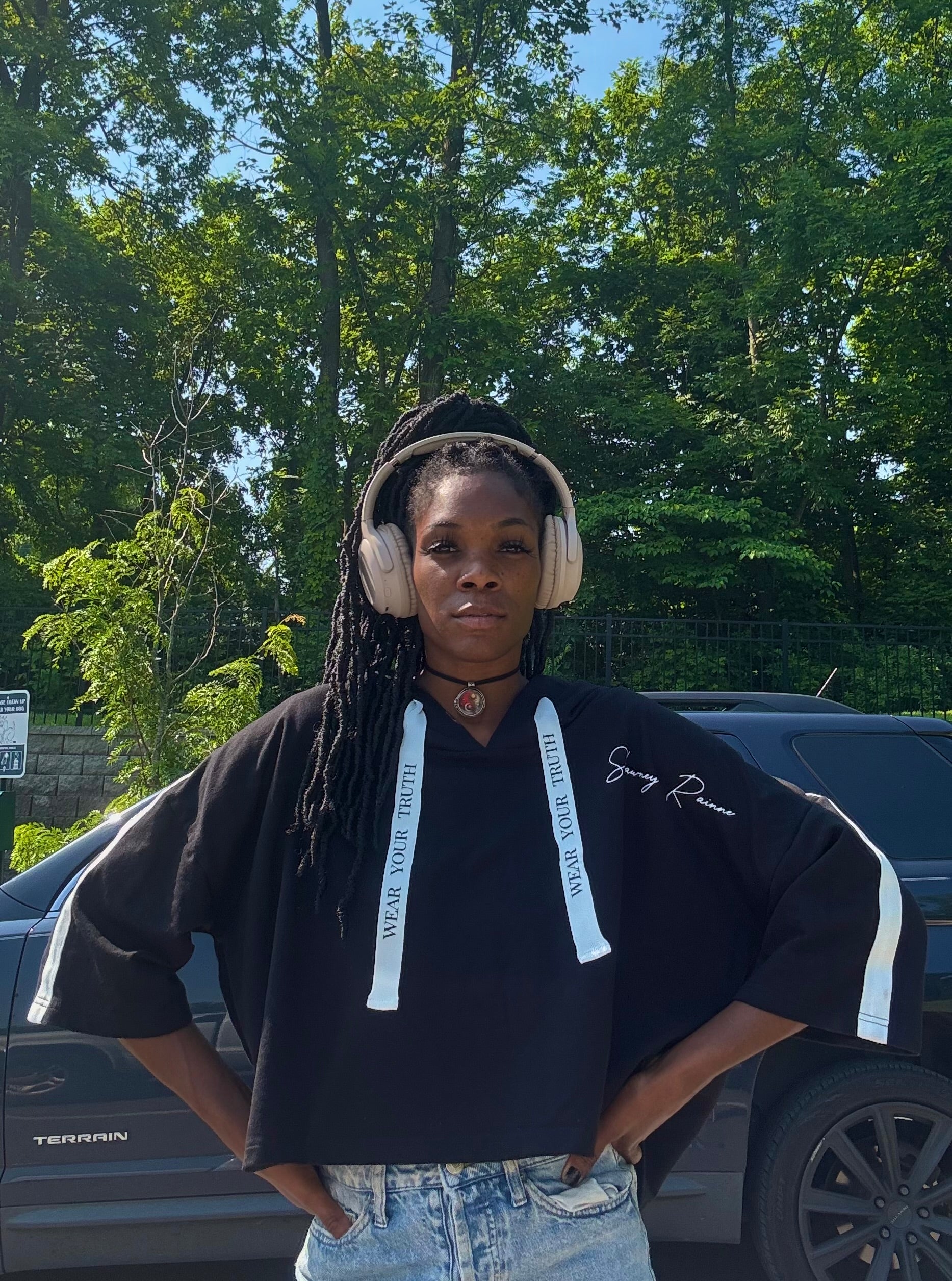 Featuring “Wear Your Truth” on the drawstrings and Shawney Rainne’s signature touch, it’s made to move with you—bold, soft, and unapologetically real.